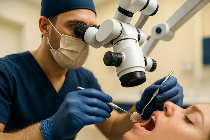 טיפול שורש עם מיקרוסקופ דנטלי